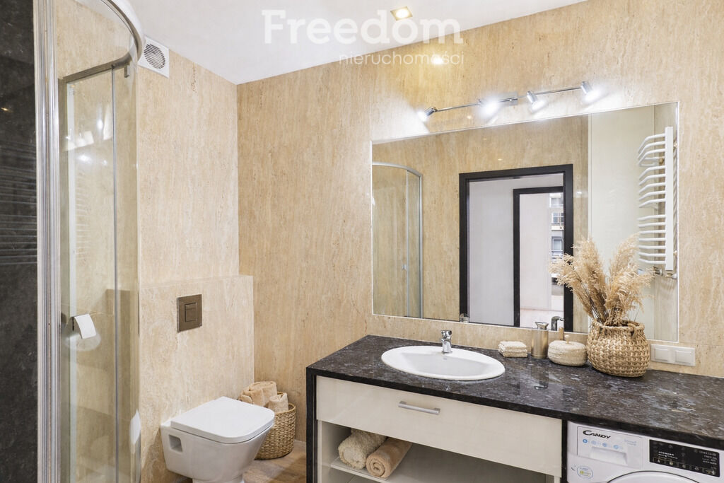pojemnymi szafami elegancka łazienka wykończona naturalnym kamieniem